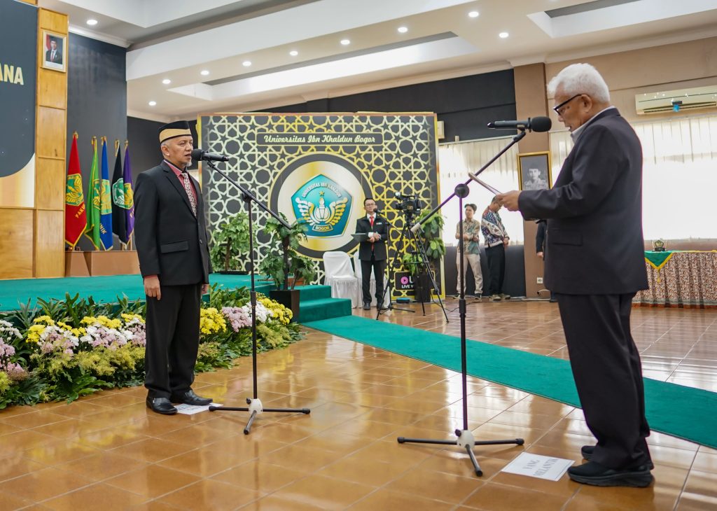 Bogor – Universitas Ibn Khaldun (UIKA) Bogor resmi melantik H. Hendri Tanjung, Ph.D., sebagai Direktur Sekolah Pascasarjana UIKA Bogor untuk masa jabatan 2025–2029, menggantikan Prof. KH. Didin Hafidhuddin, M.S yang telah memasuki masa purnabakti. Prosesi pelantikan berlangsung khidmat di Auditorium Prof. Abdullah Sidiq, Gedung Fakultas Hukum UIKA Bogor, pada Rabu (15/10/2025).