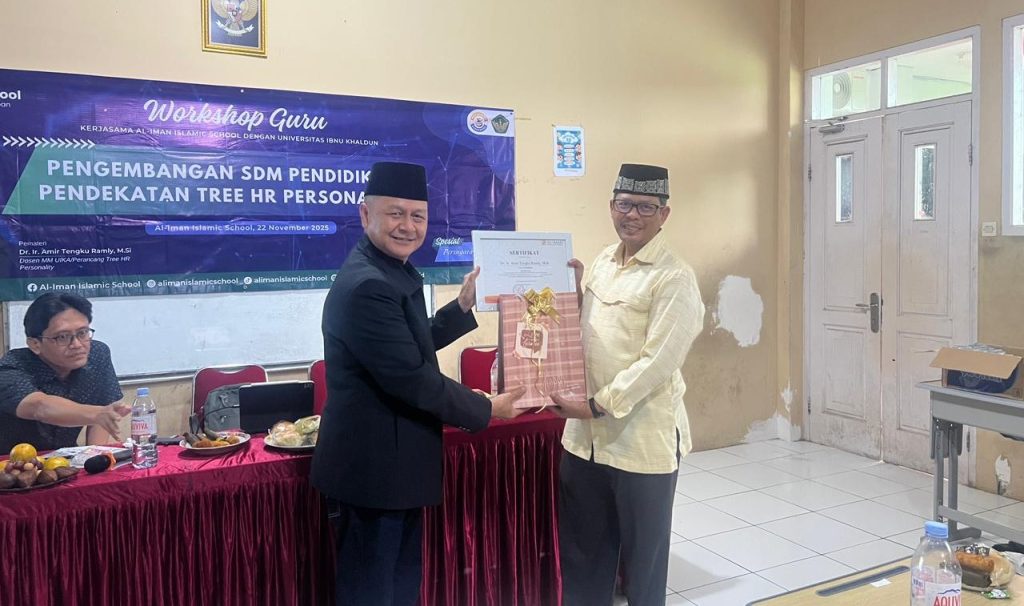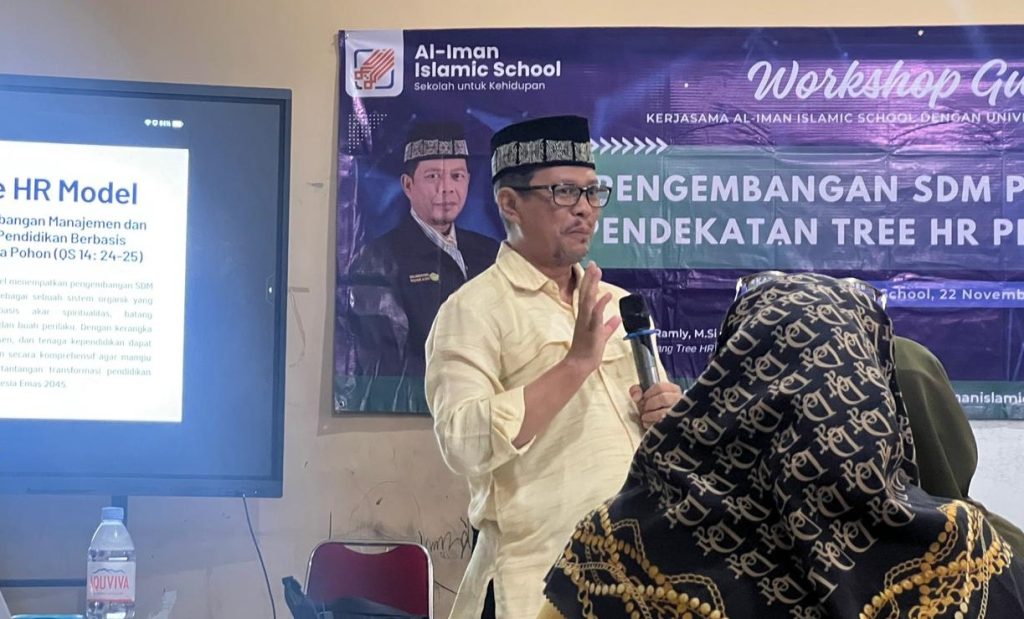 Bojonggede, 25 November 2025 — Al-Iman Islamic School menyelenggarakan Workshop Guru bertema “Pengembangan SDM Pendidikan Pendekatan Tree HR Personality”, bekerja sama dengan Sekolah Pascasarjana Universitas Ibn Khaldun (UIKA) Bogor. Kegiatan ini sekaligus menjadi momentum peringatan Hari Guru Nasional dan merupakan bagian dari program peningkatan kompetensi profesional tenaga pendidik di lingkungan Al-Iman Islamic School.
